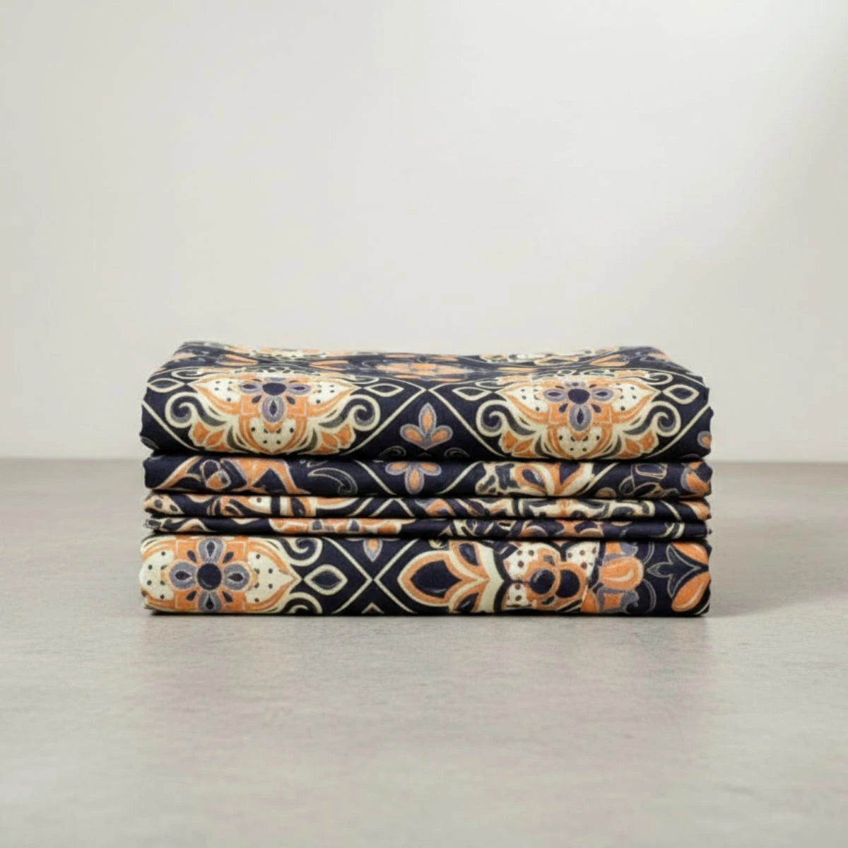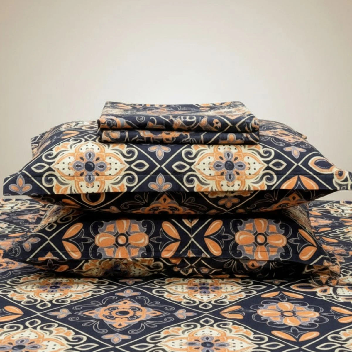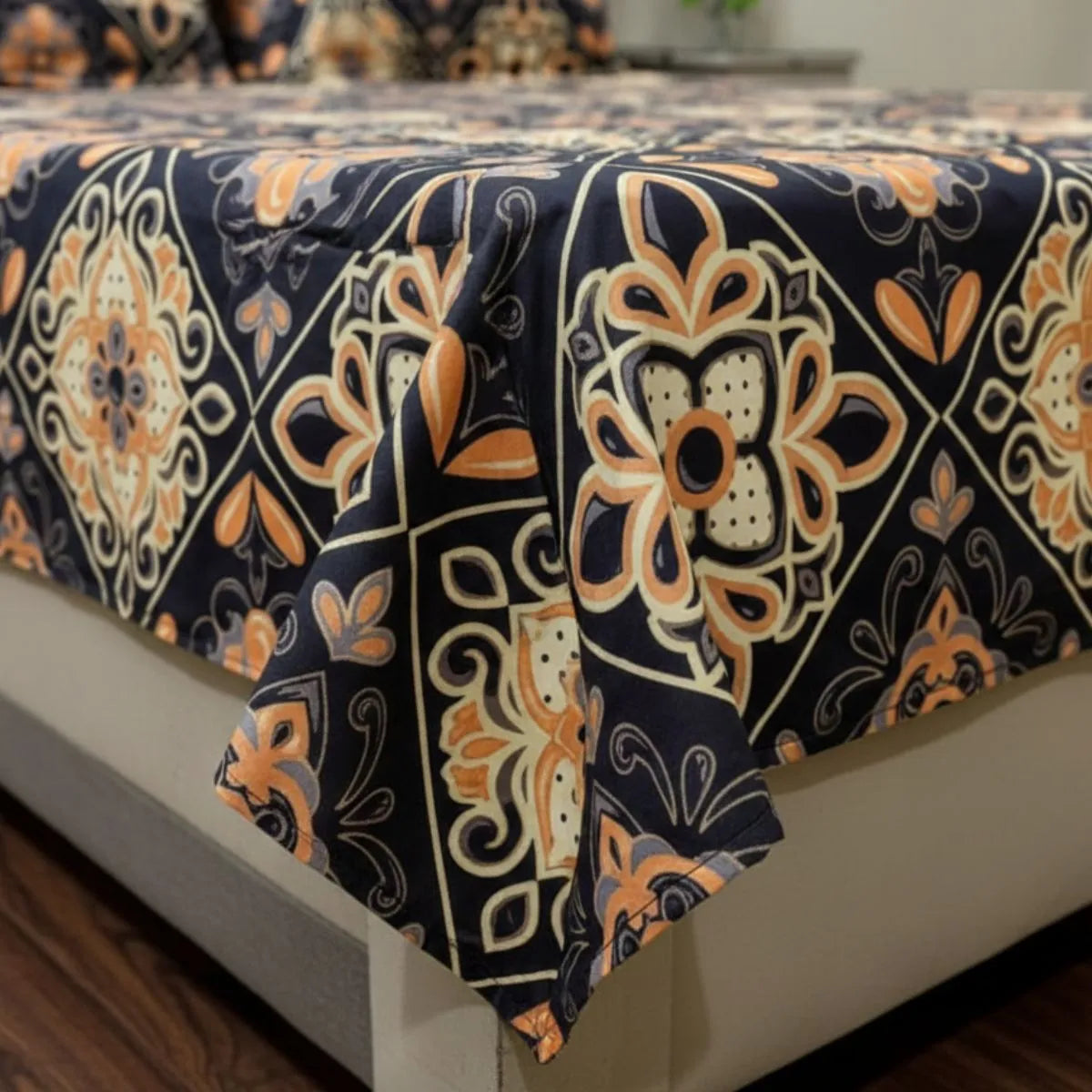 Add a touch of royal elegance to your bedroom with this stunning Midnight Royal Mosaic bedsheet. Designed with intricate floral and geometric patterns in warm golden and earthy tones over a deep dark base, this bedsheet creates a bold yet sophisticated look.