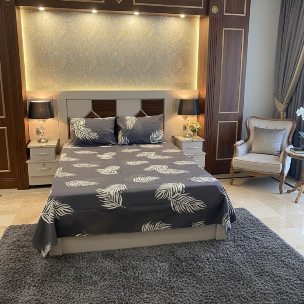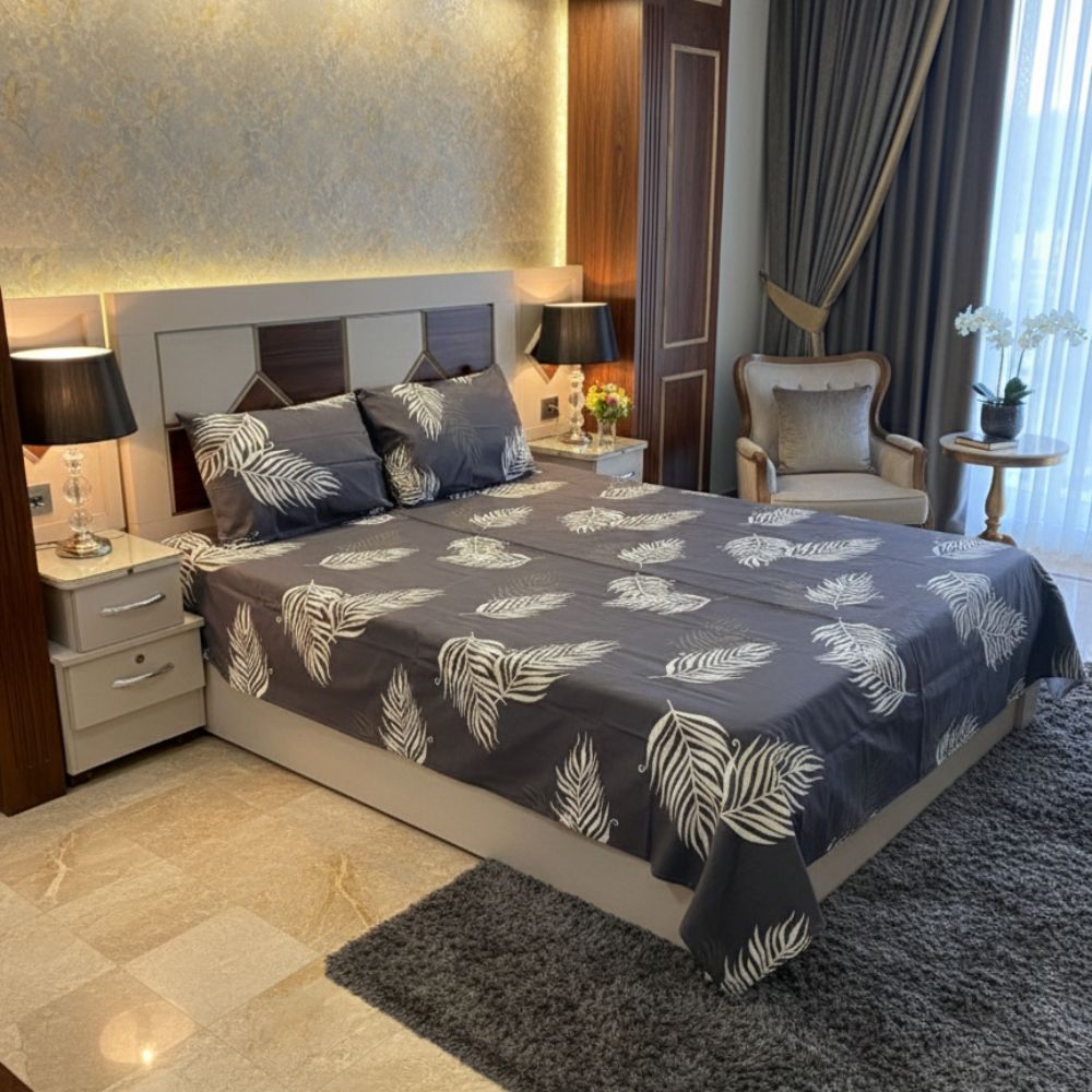 Experience timeless elegance with the Midnight Feather Elegance Bed Sheet Set. Designed with soft feather motifs on a deep charcoal background, this bedsheet adds a soothing and modern charm to your bedroom dΓ©cor. Made from high-quality cotton fabric, it ensures ultimate comfort, breathability, and durability. The smooth texture and fade-resistant print make it perfect for everyday use while maintaining a luxurious look. Ideal for all seasons, this bedsheet brings style and relaxation together for a peaceful night’s sleep.