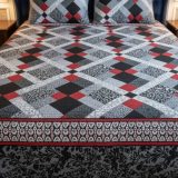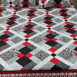 ✅ Premium 100% Cotton Fabric – Soft and breathable ✅ Fade-resistant and colorfast for long-lasting use ✅ Stylish geometric pattern with bold red accents ✅ Perfect for all seasons – cozy and cool ✅ Wrinkle-resistant and easy to maintain ✅ Comes with matching pillow covers for a complete look
